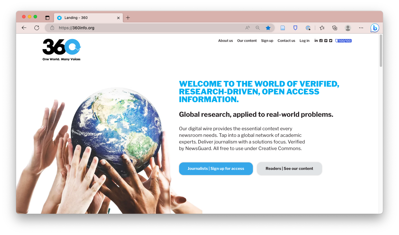Screenshot of the 360info.org front page